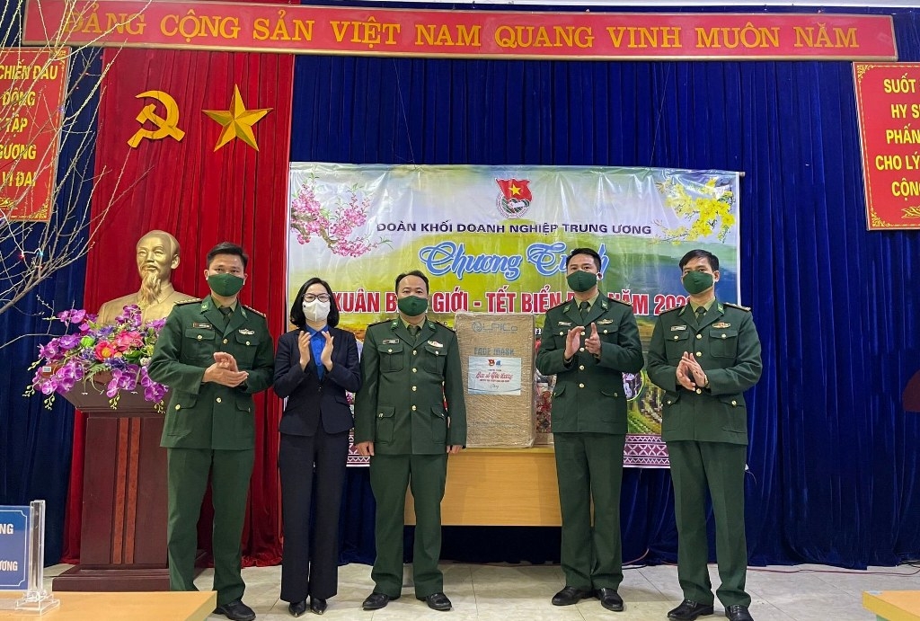 | Đoàn Khối Doanh nghiệp Trung ương trao tặng quà cho các chiến sĩ đồn Biên Phòng Bản Lầu tại xã Bản Lầu, huyện Mường Khương, tỉnh Lào Cai. |
