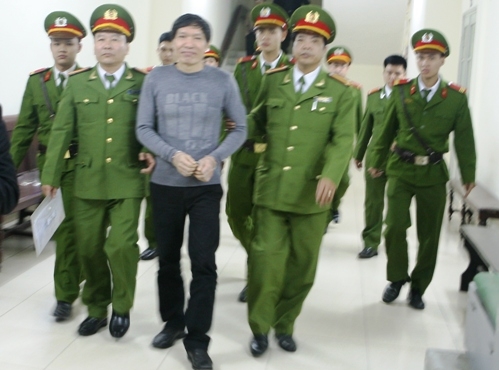 | Quân và Tuấn tại phiên tòa sơ thẩm (từ trái qua). |