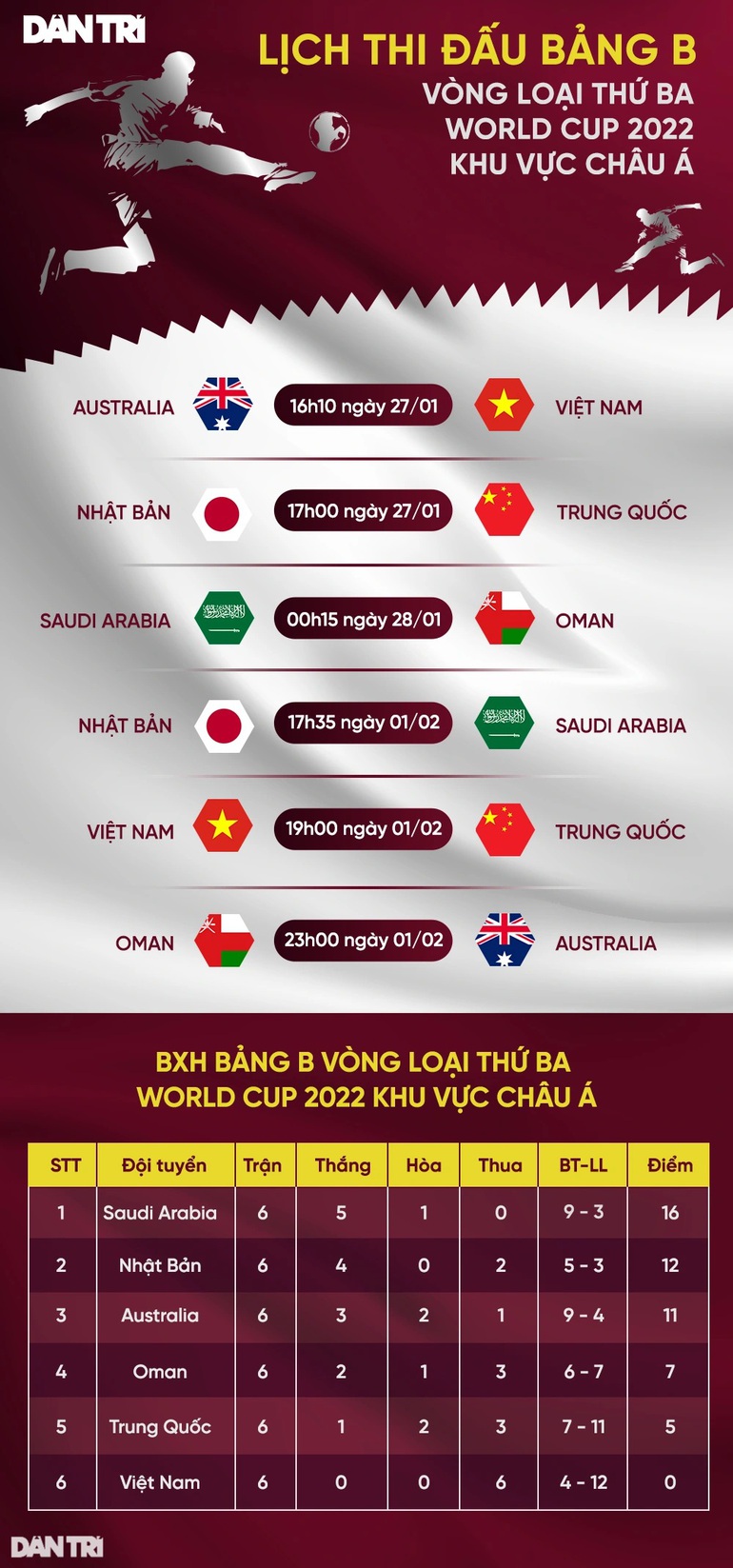 Theo kế hoạch, đội tuyển Việt Nam sẽ gặp đội tuyển Australia vào ngày 27/1, sau đó trở về sân nhà đón tiếp Trung Quốc vào ngày 1/2.
