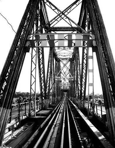 |  | | Đường ray giữa lòng cầu Long Biên. | | |