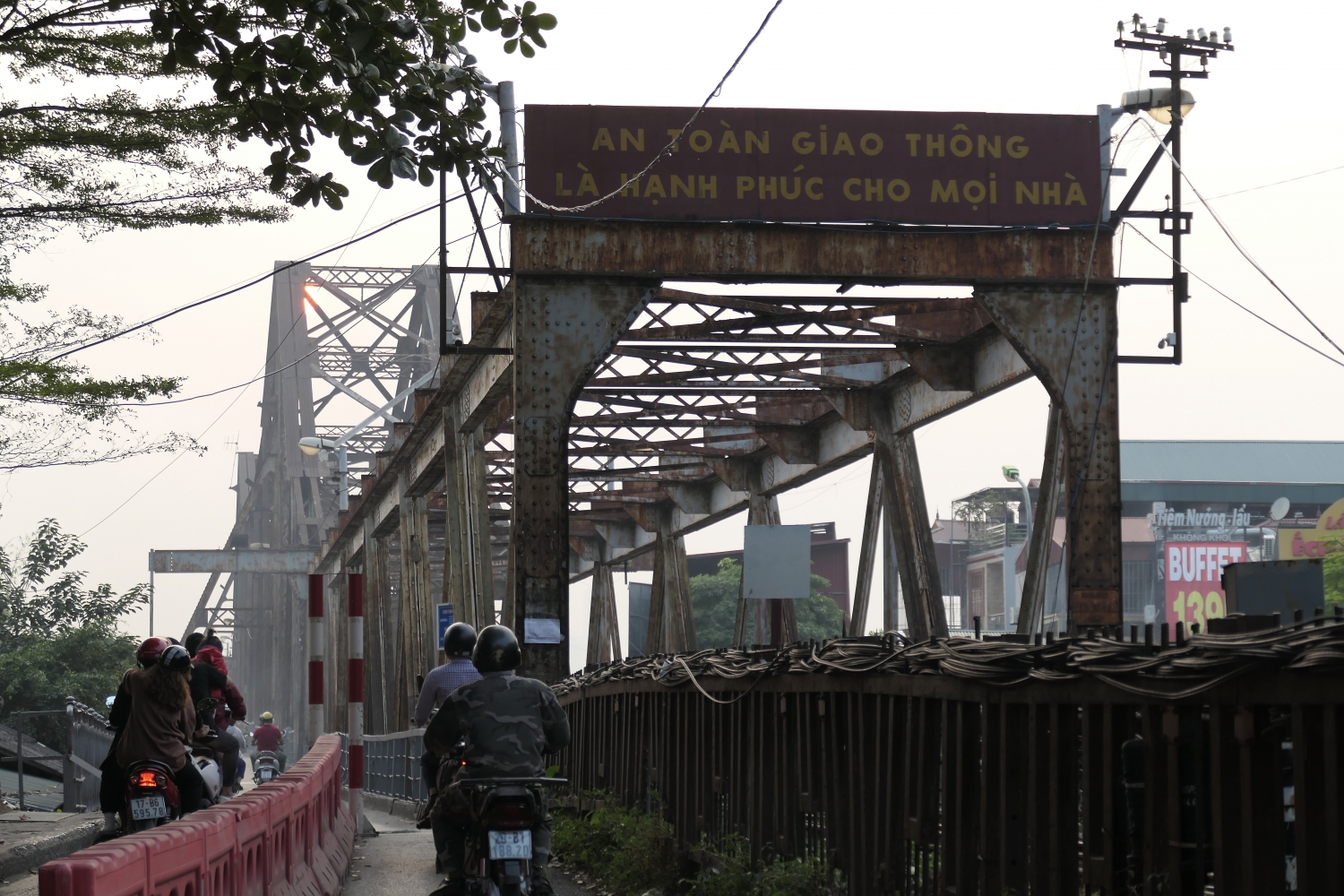 |  | | Sang thời bình, giao thông ngày một tăng trong thập kỷ 90, cầu Long Biên được sử dụng chỉ cho tàu hỏa, xe đạp và người đi bộ. Việt Nam xây dựng thêm cầu Chương Dương nhằm đáp ứng nhu cầu đi lại và để phát triển kinh tế, xã hội đô thị ở hai bờ sông Hồng Hà Nội. Cuối năm 2005 xe máy được phép đi qua cầu Long Biên để giảm việc ùn tắc giao thông cho cầu Chương Dương. | | |