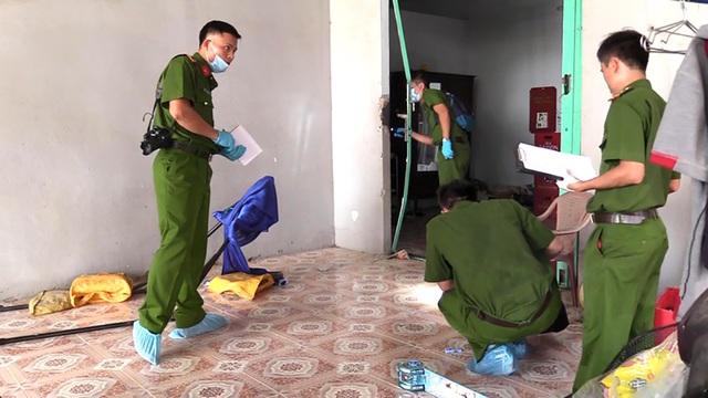 | Cơ quan công an khám nghiệm hiện trường vụ án 3 bà cháu bị sát hại dã man vào tháng 4/2019. |