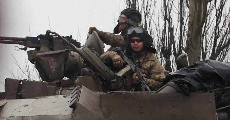 | Xe tăng Ukraine tiến vào thành phố Mariupol hôm 24/2 (Ảnh: Reuters). |