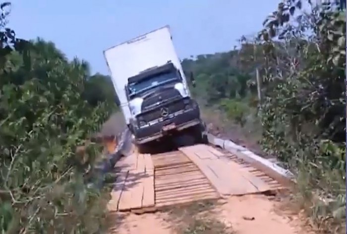 [VIDEO] Container lơ lửng vực sâu vì làm liều qua cầu gỗ cũ