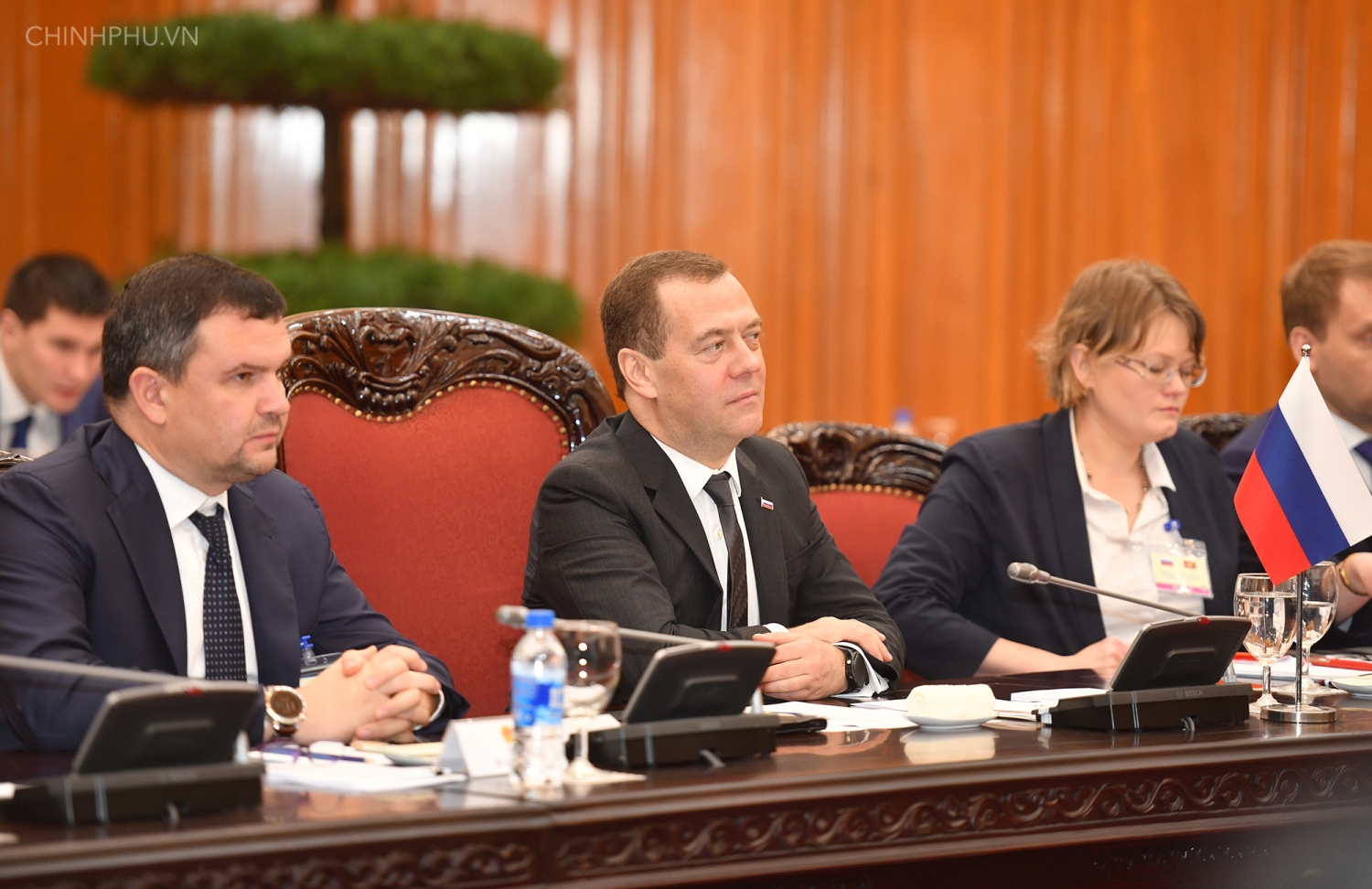 Thủ tướng Nguyễn Xuân Phúc chào mừng và đánh giá cao chuyến thăm chính thức Việt Nam của Thủ tướng Medvedev, tiếp nối chuyến thăm chính thức Liên bang Nga của Tổng Bí thư Nguyễn Phú Trọng vào tháng 9/2018 vừa qua; khẳng định chủ trương nhất quán của Việt Nam luôn coi trọng, ưu tiên quan hệ hữu nghị truyền thống và Đối tác chiến lược toàn diện Việt Nam - Liên bang Nga.