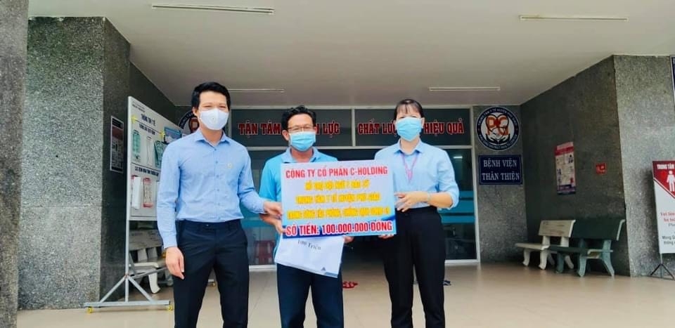 | Đại diện Tập đoàn địa ốc C-Holdings do Nguyễn Quốc Cường làm Chủ tịch HĐQT trao tiền cho các các đơn vị thuộc tuyến đầu chống dịch trên địa bàn Tỉnh Bình Dương: Trung tâm Y Tế Phú Giáo, Trung tâm Y Tế TP Thuận An, Trung tâm Y Tế TP Dĩ An, UBND TP Thủ Dầu Một, UBND TX Bến Cát. |