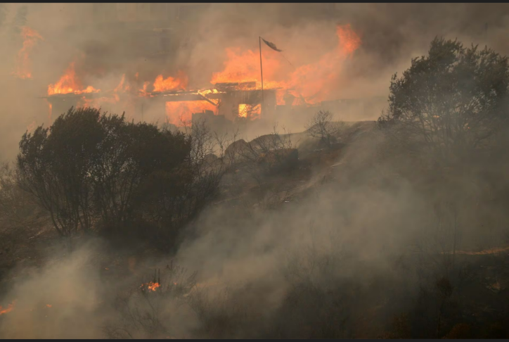 Những ngôi nhà bốc cháy khi đám cháy rừng lan rộng ở Vina del Mar, Chile, ngày 3/2