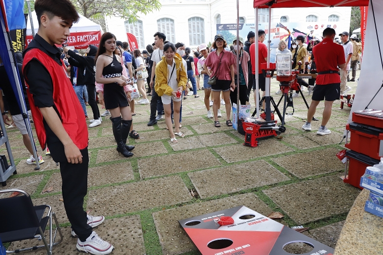 | Khách du lịch và người dân phố biển ngắm các khu trưng bày, chơi trò chơi tại sự kiện Vũng Tàu BigBike Mania |