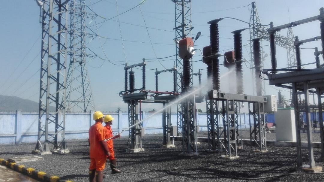| Đội sửa chữa điện nóng hotline PC Khánh Hòa tập trung vệ sinh sứ |