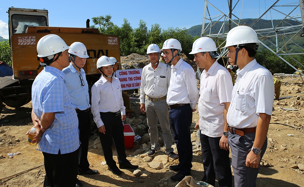 | Phó Tổng giám đốc EVNNPT Bùi Văn Kiên (thứ 3 từ phải sang) kiểm tra công trường đường dây 500kV mạch 3 tháng 9/2020. |