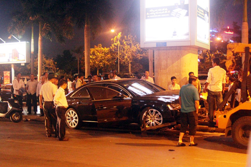 Đến 23h cùng ngày, chiếc Audi A8L biển số 51A-66128 gây tai nạnđã được kéo về trụ sở Công an quận Tân Bình (TP.HCM) để điều tra làm rõ nguyên nhân vụ tai nạn.