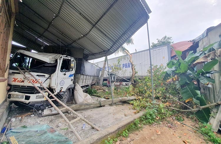Xe container lao qua mương thoát nước bên phải đường, đâm vào giữa nhà anh Trương Xuân Lâm, tông sập tường. Lúc này gia chủ đang cùng hai con nằm ngủ. Cú đâm của xe container khiến anh Lâm văng ra khỏi giường. Bức tường đổ đè lên đống chăn màn cùng hai cháu nhỏ. Ba nạn nhân choáng váng, may mắn chỉ bị thương nhẹ.