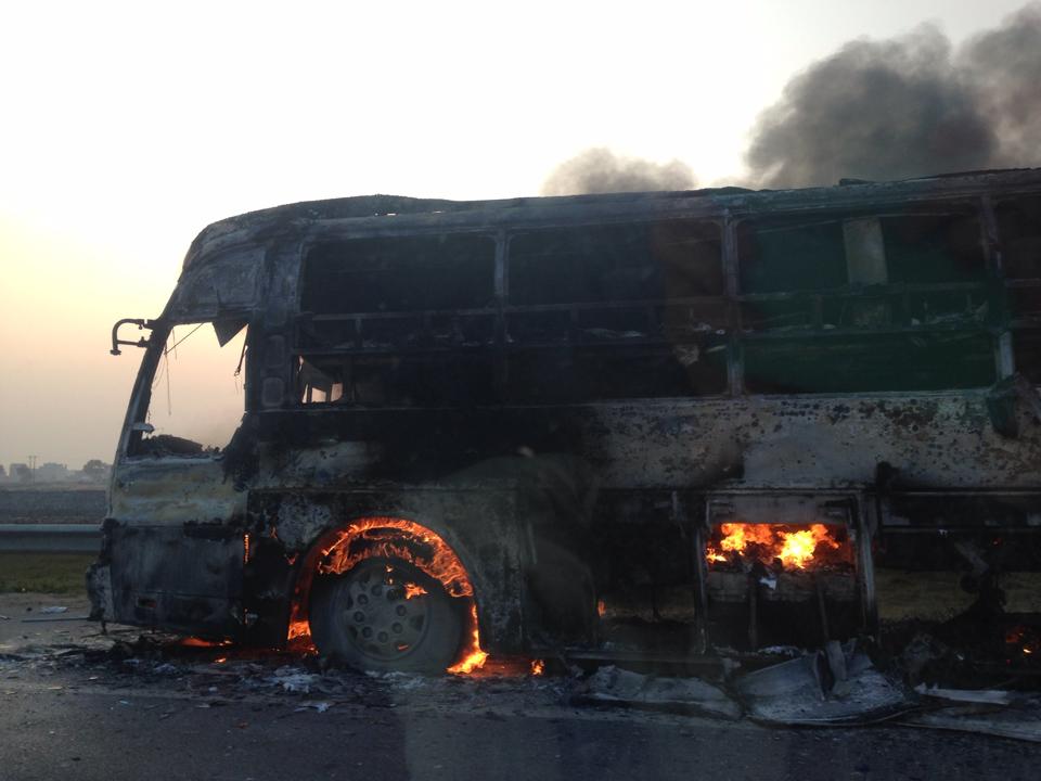 Chiếc xe khách cháy rụi, trơ khung sắt (ảnh độc giả cung cấp)