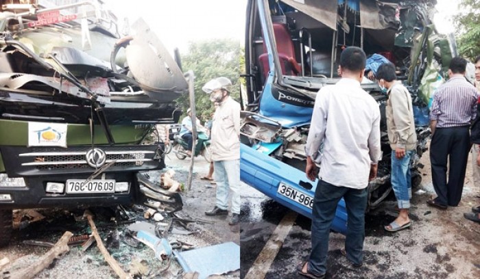Thông tin ban đầu, xe khách giường nằm mang BKS 35N-9667 do tài xế Trần Quốc Cường (SN 1991, quê ở Kim Sơn, Ninh Bình) điều khiển chạy theo hướng Bắc -Nam, khi đến địa điểm trên thì bất ngờ sang bên trái đường, tông vào xe tải chở dăm gỗ mang BKS 76C-07609 do tài xế Đinh Văn Hậu (xã Long Môn, huyện Minh Long, Quảng Ngãi) chạy hướng chiều ngược lại.