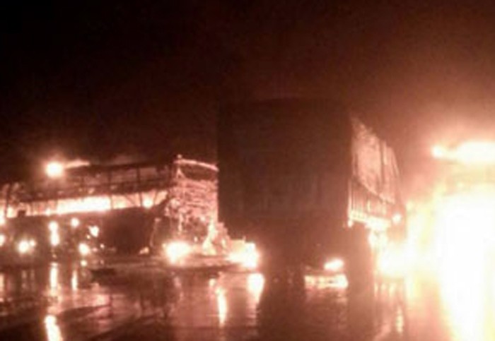 Xe khách tông nhau bốc cháy, 13 người thiệt mạng