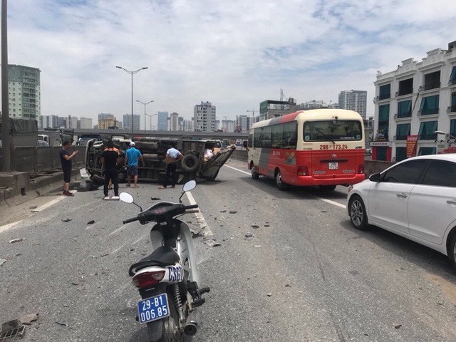 Khoảng 12h trưa 23/8, xe tải mang BKS: 51C – 090.91 (chưa rõ danh tính tài xế) đang đổ dốc cầu Phú Mỹ hướng từ quận 7 đi quận 2. Khi đến đoạn gần hết dốc thuộc phường Thạnh Mỹ Lợi, quận 2, TP HCM thì bất nổ lốp lao qua trái húc bay hàng chục mét dải phân cách, lộn nhiều vòng rồi lật nhào.