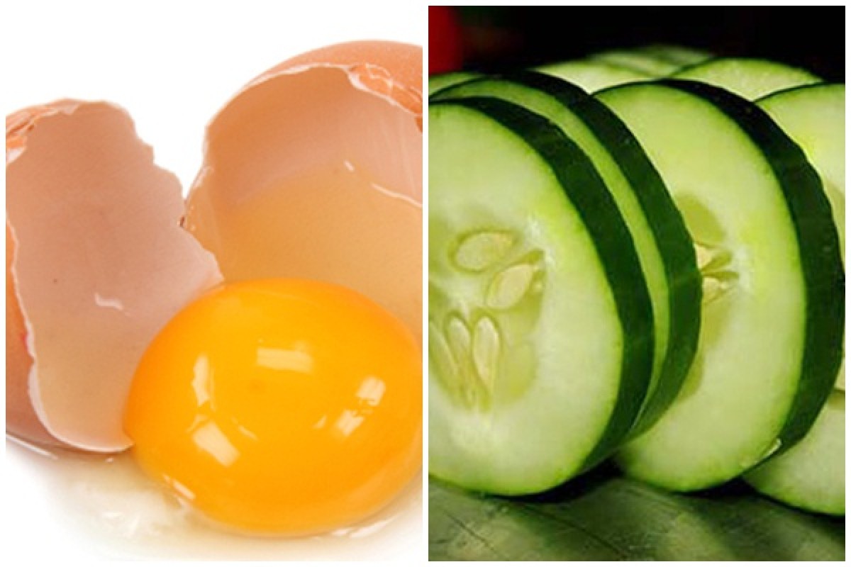 Trộn 2 muỗng nước dưa leo (có thể xay hoặc xắt nhuyễn rồi vắt lấy nước) với 1 quả trứng gà.