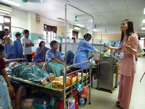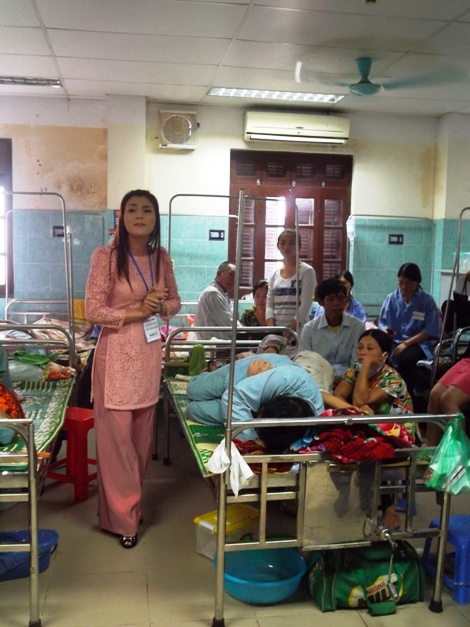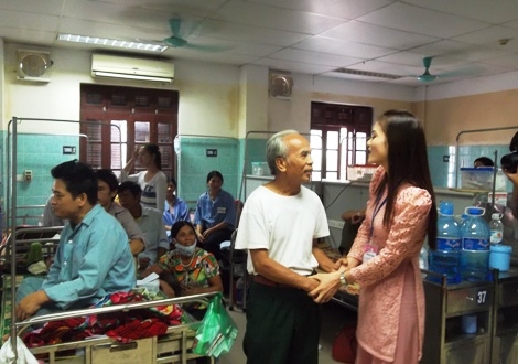 Phương Thảo đến hỏi thăm từng bệnh nhân và hát cho họ nghe.
