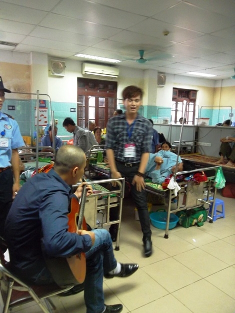 Nhạc sĩ Nguyễn Tuấn - ca sĩ Trung Quân hát tặng bệnh nhân.